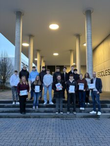 Auch die insgesamt neun weiteren Plätze freuten sich über verschiedene tolle Preise und Gutscheine. Die Wirtschaftsjunioren Lippe führen das Quiz schon seit Jahrzehnten in Lippe durch. Die jungen Unternehmer und Führungskräfte besuchen dazu lippischen Schulen und gestalten mit ihrem Quiz den Wirtschaftsunterricht in den Klassen mit. Seit einigen Jahren gibt es zusätzlich einen kleinen lippischen Fragebögen. Insgesamt 15 Schüler:innen konnten sich hier bei Fragen zum lippischen Pölter, den Nachbarbundesländern NRWs oder auch typisch lippischen Eigenschaften über Kinogutscheine freuen.