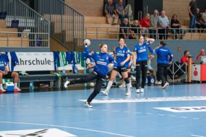 Der Saisonstart für das Team von Ilka Fickinger, die die Bensheimerinnen nach dem Abgang von Heike Ahlgrimm im Sommer übernommen hat, hätte kaum besser verlaufen können: In vier Spielen fuhren die „Flames“ vier Siege ein – darunter auch ein überzeugender Erfolg gegen den BVB, den die Bensheimerinnen beim Heimspiel insbesondere in der ersten Halbzeit dominierten. Bereits zur Pause setzten sich die Gastgeberinnen deutlich mit 20:10 ab und konnten sich während der gesamten Partie auf Torhüterin Helen van Beurden verlassen, die mit zehn Paraden glänzte.