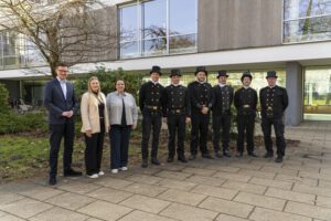 Die bevollmächtigten Bezirksschornsteinfeger haben sich in einem Ausschreibungsverfahren gegen ihre Mitbewerber durchgesetzt und sind für einen Zeitraum von sieben Jahren bestellt. Im Rahmen einer Feierstunde gratulierte Tim Wagner, zuständiger Dezernent bei der Bezirksregierung, den Hoheitsträgern zur Übernahme ihres Kehrbezirks. Als Vertreter der Schornsteinfegerinnung nahm der stellvertretende Obermeister Rainer Wulfmeier teil, als Altgeselle gratulierte Fynn Krämer den bevollmächtigten Bezirksschornsteinfegern.