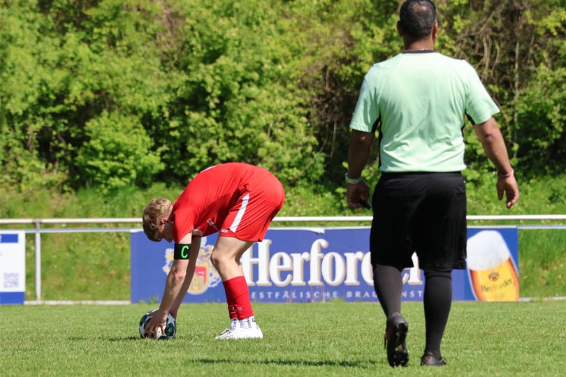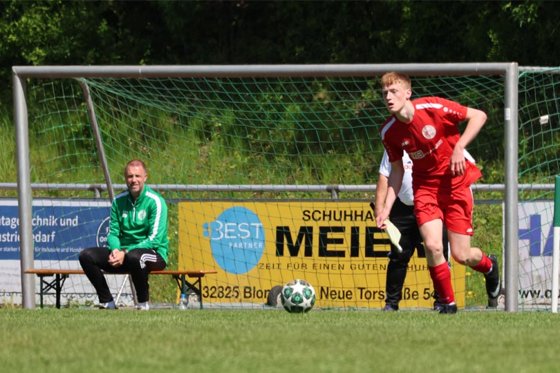 Im zweiten Durchgang konnte Fynn Sand den mehr als verdienten Ausgleich erzielen und traf in Minute 48 zum 1:1. Nur fünf Minuten später reichte erneut Rrahman Zeqiraj ein unachtsamer Moment in der Blomberger Defensive zur erneuten Führung der Gäste. Blomberg zeige jedoch Moral und ließ sich nicht beirren, hielt an der Spielweise fest und erarbeitete sich weitere Chancen – ohne sich letztlich zu belohnen. Der BSV erhöhte den Druck, musste ins Risiko gehen. In der 76. Spielminute entschied der Unparteiische dann richtigerweise nach einem Handspiel der Gäste auf Strafstoß. Jonas Hülsdonk traf souverän zum Ausgleich. Mit diesem 2:2 trennten sich die Mannschaften dann auch, Blomberg konnte sich zwar abschließend noch zwei weitere Möglichkeiten erarbeiten, belohnte sich aber nicht für die eigentlich konstant gute Qualität in der Offensive. Gleichwohl es eine mannschaftlich geschlossen gute Leistung gewesen ist – gerade dem nach längerer Verletzungszeit zurück gekehrten Noah Cheikh-Moussa muss an dieser Stelle ein Lob ausgesprochen werden. Sicherlich noch nicht wieder ganz auf Niveau hat er sich doch durch das Spiel gebissen und immer wieder Akzente gesetzt.