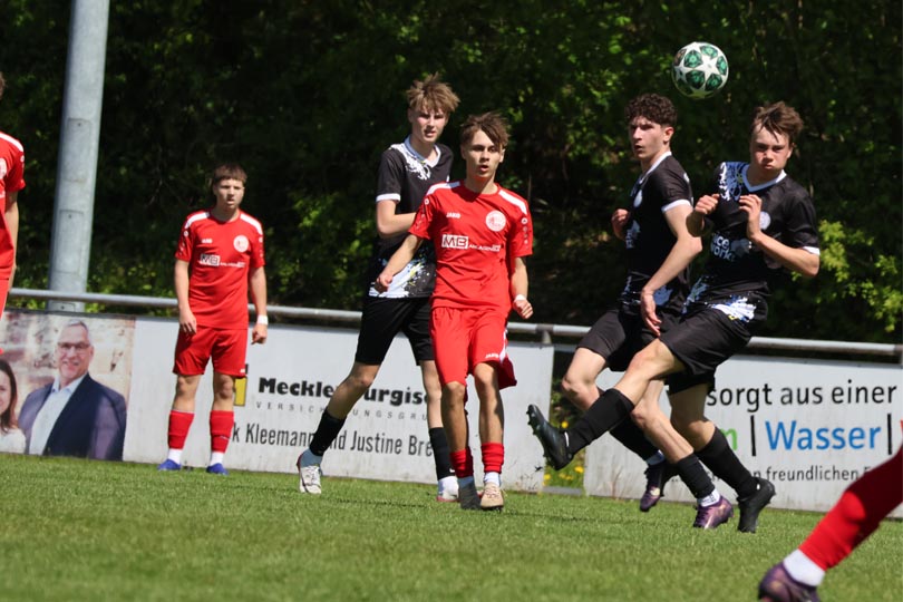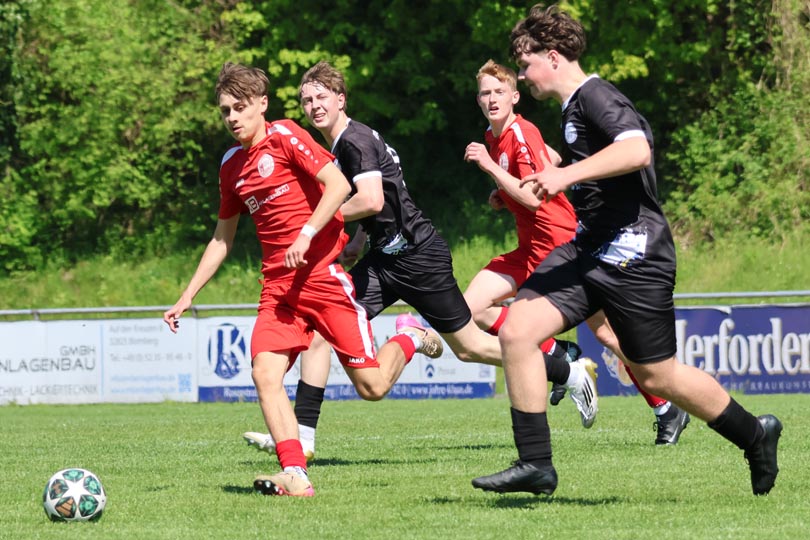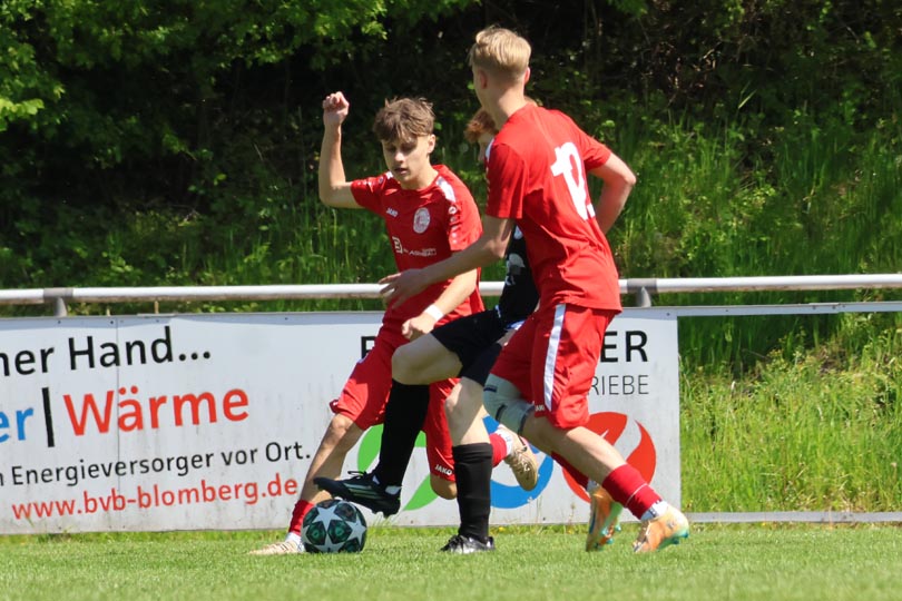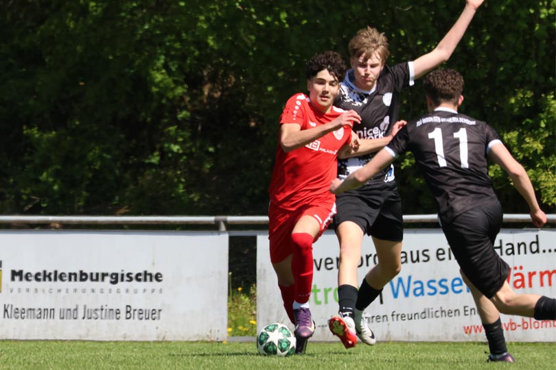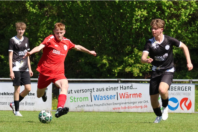 Blomberg übernahm von Beginn an das Kommando und spielte klar strukturiert nach vorn. Was eigentlich in den ersten 40 Minuten ein Spiel auf ein Tor und fast schon in nur einer Hälfte war, spiegelte sich im Halbzeitstand leider nicht wider. Rrahman Zeqiraj überraschte in der 16. Minute mit einem Treffer aus dem Nichts. Chancenwucher nennt man es wohl wenn man die Kugel einfach nicht über die Torlinie schieben kann und eine Möglichkeit nach der anderen liegen lässt. Doch ein B-Jugendspiel hat bekanntlich 80 Minuten und noch war nichts verloren.