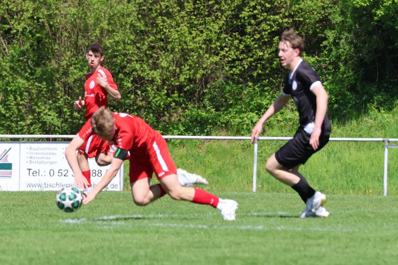 Am Samstag stand für die B-Jugend, das Team von Chef-Trainer Daniel Deppe, in der Kreisliga A ein Spitzenspiel auf dem Programm (Co-Trainer Georgios Maleskos war urlaubsbedingt verhindert und somit unterstützte Jörg Brettmeier am Spielfeldrand). Tabellenprimus JSG Hiddesen-Heidenoldendorf reiste ins Stadion am Rammbocke und schien hochmotiviert die drei Punkte aus Blomberg zu entführen. Doch der punktgleiche BSV, der nur aufgrund des etwas schlechteren Torverhältnisses auf Platz zwei rangierte, war ebenfalls motiviert und wollte die Tabellenführung übernehmen.