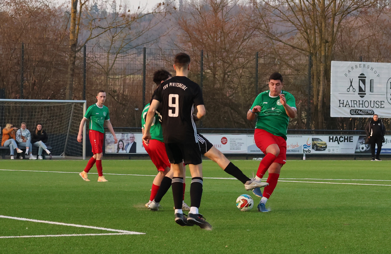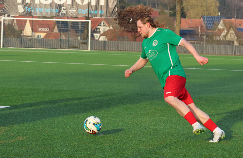 Bei frühlingshaften Bedingungen mit Sonnenschein und rund 18 Grad setzte sich der Blomberger Sportverein am Sonntag (08.03.2026) deutlich mit 6:2 gegen den FSV Pivitsheide durch. Allerdings benötigte der BSV die erste Halbzeit um wirklich ins Spiel zu finden und machte es im ersten Durchgang phasenweise deutlich spannender, als es hätte sein müssen. Bereits in der 6. Minute setzte sich der FSV über die Außenbahn durch, brachte den Ball in die Mitte und im zweiten Versuch drückte Liridon Kiki den Ball zur frühen 1:0-Führung über die Linie. Der Blomberger SV brauchte einige Minuten, um ins Spiel zu kommen, fand dann aber eine Antwort: Nach einer Ecke in der 17. Minute setzte sich Cakdar Fahro im Kopfballduell durch und erzielte den Ausgleich zum 1:1.