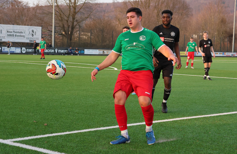 Die Partie blieb jedoch zunächst offen – und defensiv anfällig. Nur zwei Minuten später schlug Pivitsheide einen langen Ball an den zweiten Pfosten, wo Issam Oulali zu viel Platz bekam und zum 1:2 einschob. Der BSV wirkte in dieser Phase etwas passiv, konnte jedoch erneut ausgleichen. Nachdem Tom Leon Bolte im Strafraum zu Fall gebracht worden war, verwandelte Andre Georg den fälligen Elfmeter in der 28. Minute sicher zum 2:2. Bis zur Pause blieb das Spiel zerfahren. Zwar erspielte sich der Blomberger Sportverein weitere Möglichkeiten, doch fehlte häufig die letzte Konsequenz. Andre Georg hatte den gegnerischen Schlussmann mit einem Distanzschuss aus 16 Metern geprüft und kurz vor der Halbzeit wurde es noch einmal gefährlich: Bennet Bültmann scheiterte nach Vorarbeit von Georg mit einem Schlenzer am Torwart, der den Ball zur Ecke klären konnte. Diese köpfte Georg knapp neben das Tor und so ging es mit dem 2:2 in die Kabinen.