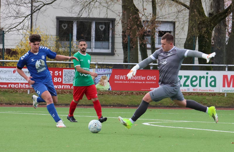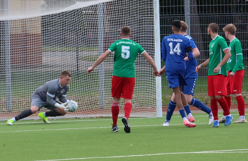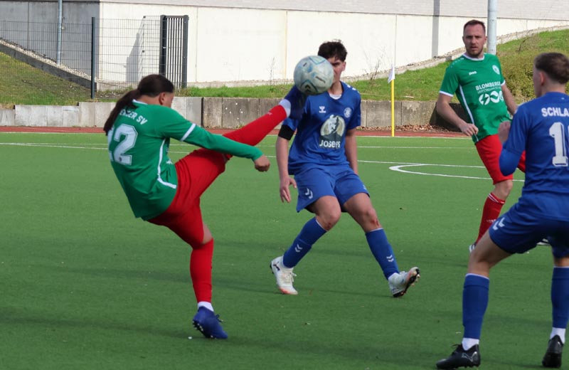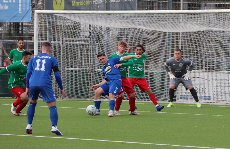 Den gestrigen Spieltag der ersten Herren fasst der Blomberger SV wie folgt zusammen: „Bei schwierigen personellen Voraussetzungen sind wir zum Auswärtsspiel bei FC Fortuna Schlangen angereist. Der Tabellenzweite, der noch voll im Aufstiegsrennen steckt, übernahm von Beginn an die Kontrolle und stellte uns früh vor große Probleme. Bereits in der 3. Minute gingen die Gastgeber durch Til Max Kottmann nach einer Flanke in Führung, ehe nur zwei Minuten später erneut Til Max Kottmann nach einem Fehler im Spielaufbau auf 2:0 erhöhte. Im direkten Gegenzug konnten wir ein Ausrufezeichen setzen. Nach Befreiungsschlag des gegnerischen Torhüter fiel der Ball vor die Füße von Silas Götz, der aus rund 45 Metern zum 2:1 einnetzte.