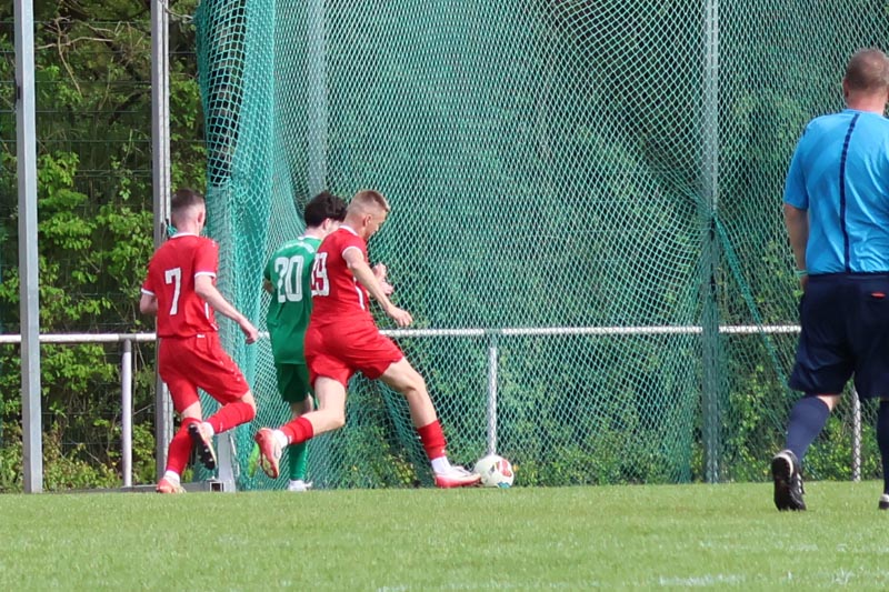 In der Folge wurden wir mutiger und erspielten uns erste Möglichkeiten. Nach 28 Minuten hatten wir unsere bis dahin beste Szene, als ein Freistoß aus etwa 20 Metern zunächst vom gegnerischen Torwart pariert wurde. Den Nachschuss setzte Henry Drews erneut aufs Tor, doch auch diesen Versuch konnte der Schlussmann entschärfen und schließlich zur Ecke klären. Kurz vor der Pause kam Jarrit Karaus noch einmal aus 25 Metern zum Abschluss, verfehlte das Tor jedoch knapp. Insgesamt hielten wir in der ersten Halbzeit gut mit, erspielten uns Chancen, konnten diese aber nicht nutzen und gingen mit einem knappen Rückstand in die Kabine.