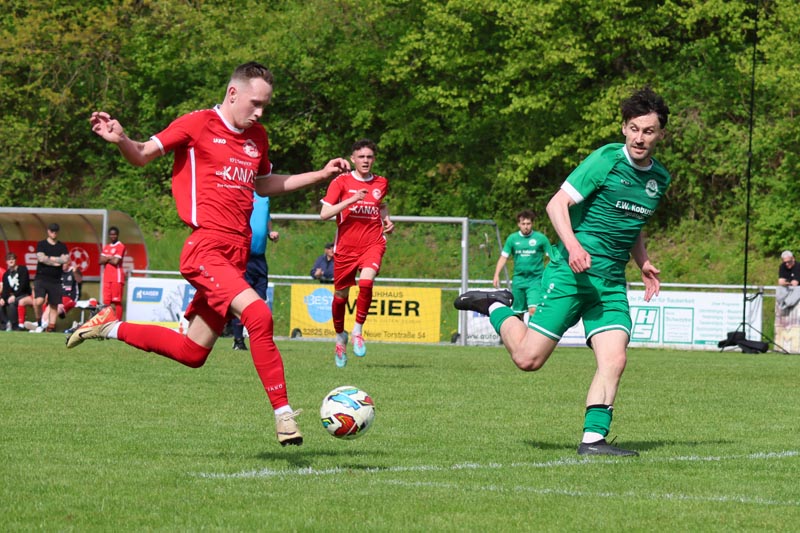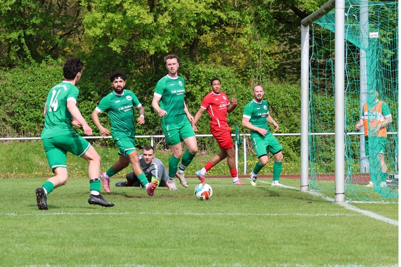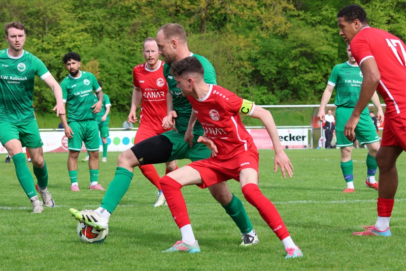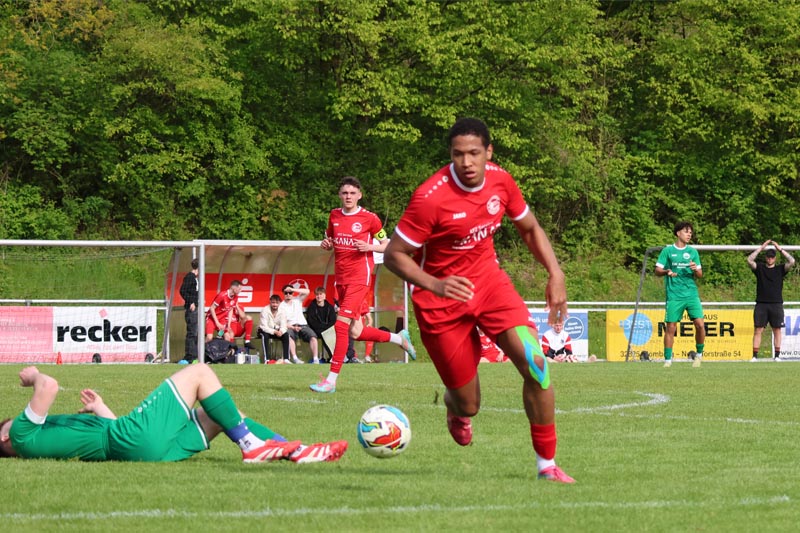 Wir ließen die Köpfe nicht hängen und versuchten weiterhin, Druck aufzubauen. Jarrit Karaus hatte in der 56. Minute nach einer einstudierten Freistoßvariante die große Chance zum Ausgleich, kam völlig frei im Strafraum zum Abschluss, setzte den Ball jedoch über die Latte. Auf der anderen Seite nutzte Kachtenhausen seine Möglichkeiten eiskalt. In der 65. Minute führte ein Angriff über die rechte Seite zu einer Flanke, die Danny Boschmann annahm, sich vorlegte und per Volley sehenswert zum 1:3 in den Winkel traf.