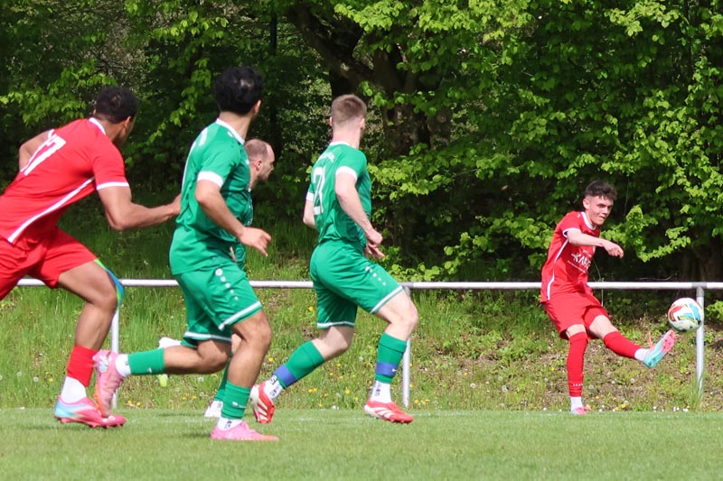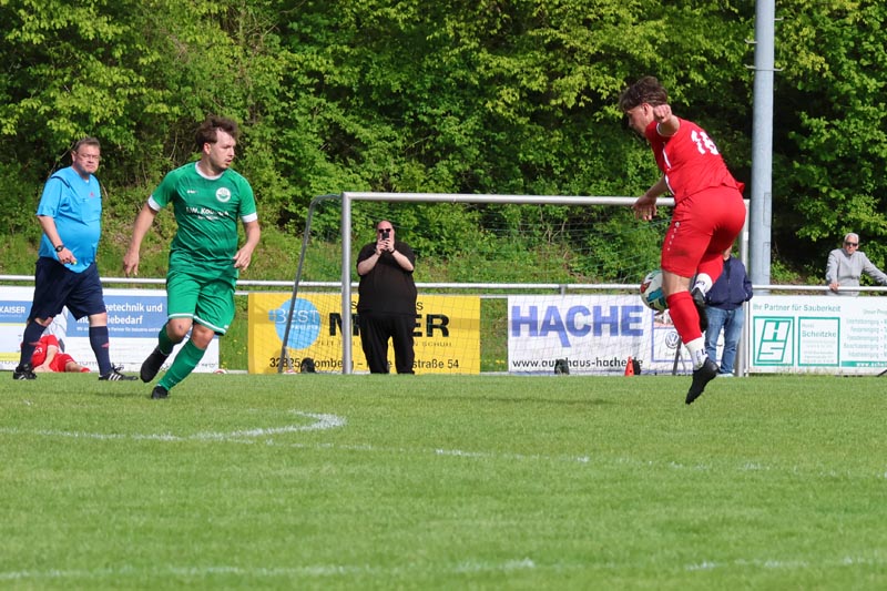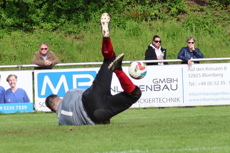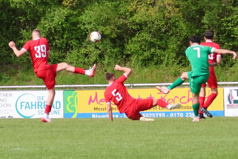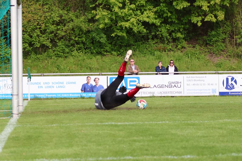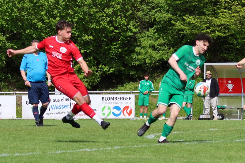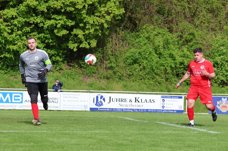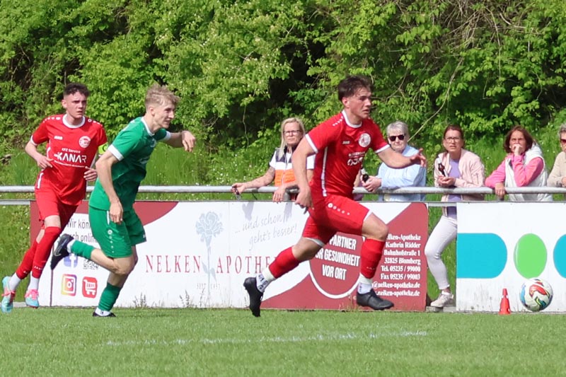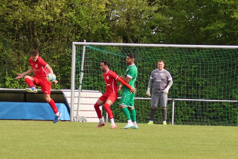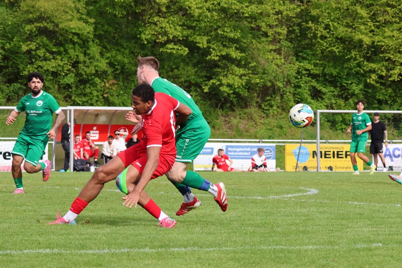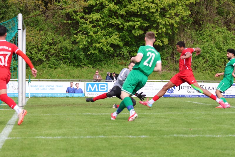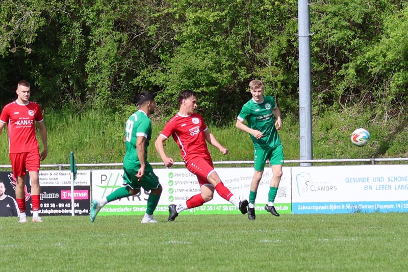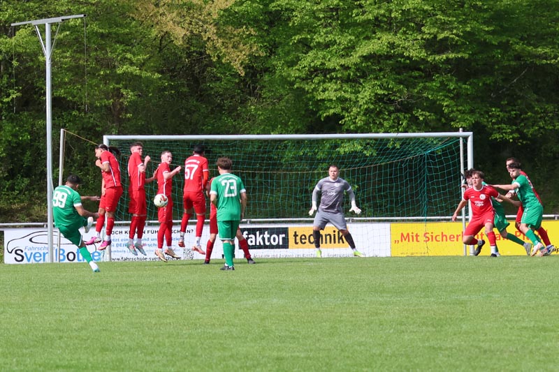 Trotz des Rückschlags spielten wir weiter nach vorne und wollten uns nicht geschlagen geben. Bennet Bültmann prüfte den gegnerischen Torwart in der 76. Minute mit einem platzierten Schuss aus 17 Metern, doch auch hier blieb der Schlussmann Sieger. In der Schlussphase warfen wir noch einmal alles nach vorne und hatten in der Nachspielzeit Pech, als André Georg nach einem Freistoß per Volley nur die Latte traf.