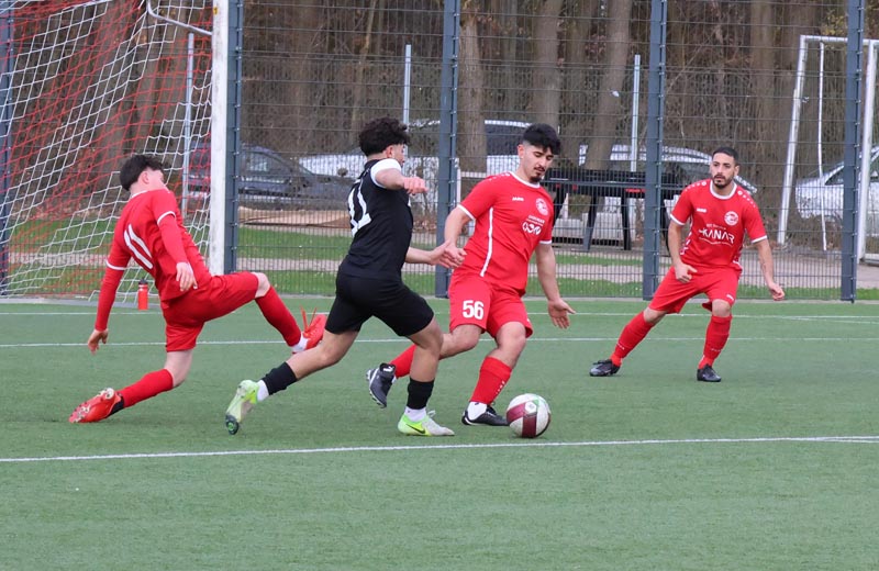 Doch die Antwort der Gastgeber ließ nicht lange auf sich warten. In der 55. Minute prüfte Servan Kartal unseren Torwart mit einem satten Schuss aus 17 Metern, den Luca Borcheld noch zur Ecke lenkte. Zwei Minuten später landete ein Kopfball von Ken Oliver Gill nach einer Ecke am Pfosten. In der 58. Minute fiel dann die erneute Führung: Nach einem Pass in die Tiefe drehte sich Ken Oliver Gill geschickt um seinen Gegenspieler und traf zum 3:2.