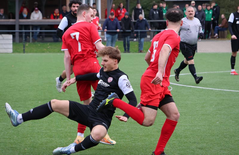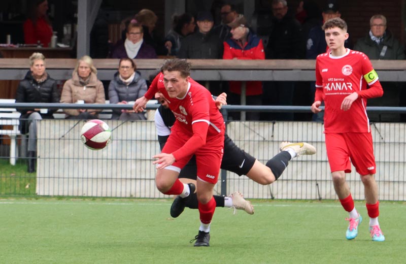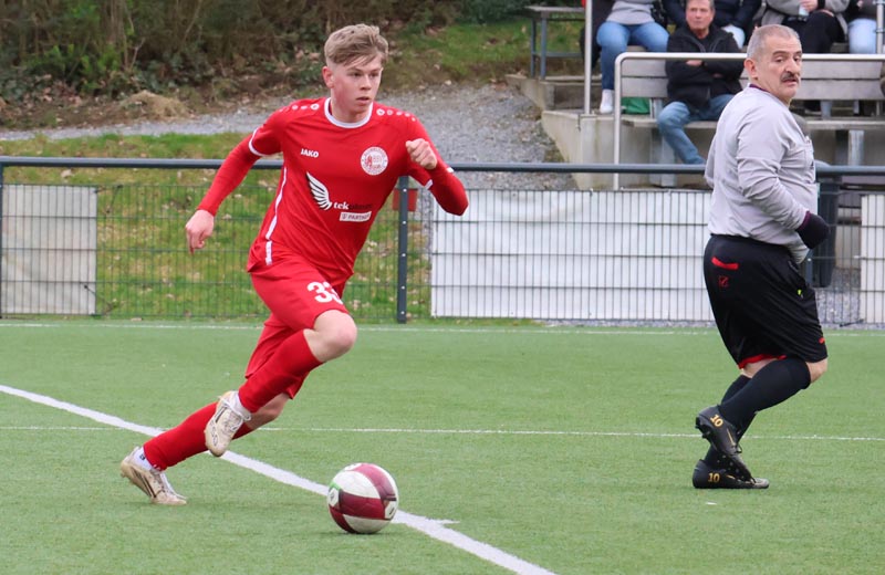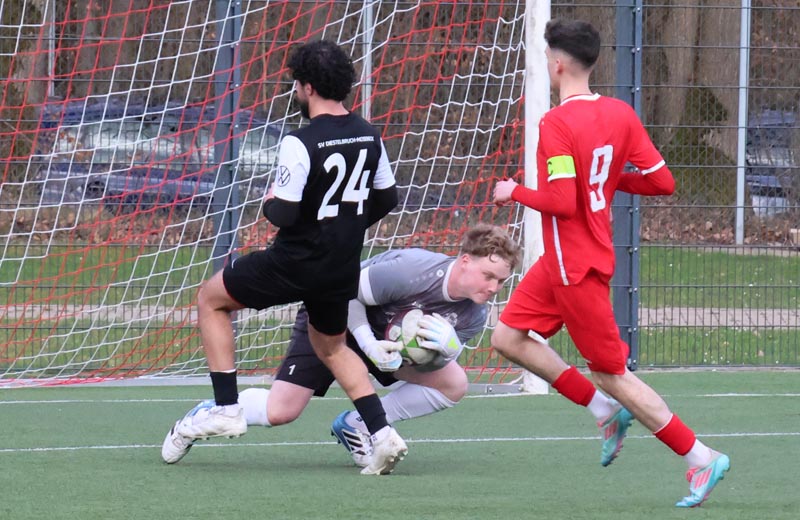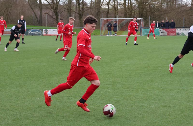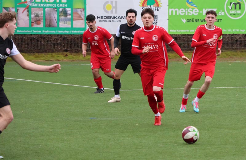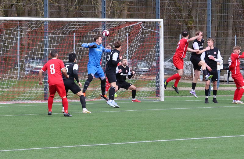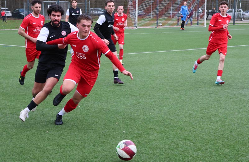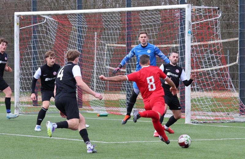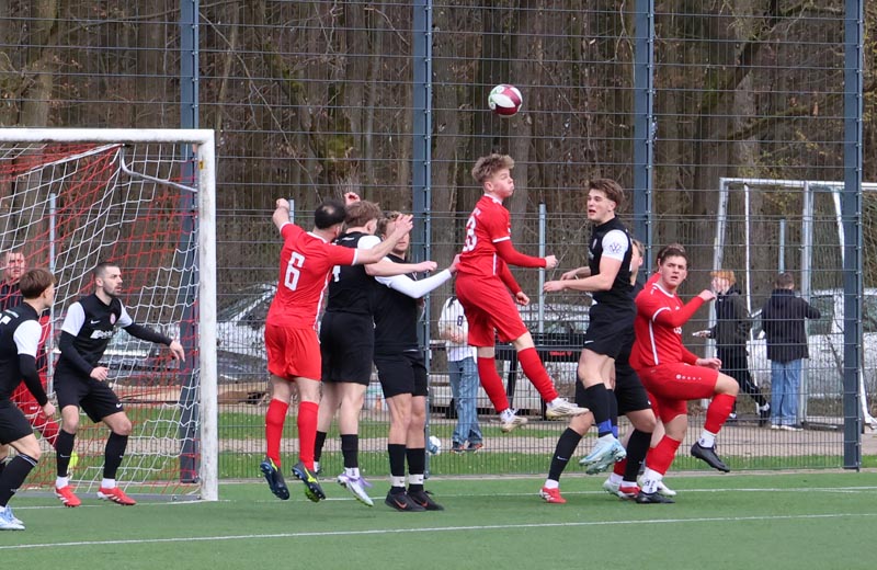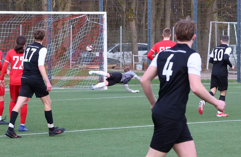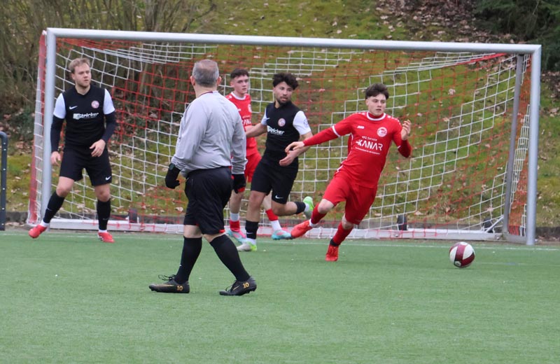 Doch die Antwort der Gastgeber ließ nicht lange auf sich warten. In der 55. Minute prüfte Servan Kartal unseren Torwart mit einem satten Schuss aus 17 Metern, den Luca Borcheld noch zur Ecke lenkte. Zwei Minuten später landete ein Kopfball von Ken Oliver Gill nach einer Ecke am Pfosten. In der 58. Minute fiel dann die erneute Führung: Nach einem Pass in die Tiefe drehte sich Ken Oliver Gill geschickt um seinen Gegenspieler und traf zum 3:2.