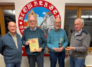 Bei den Fahrradtouren in den Sommerferien, in denen die Sporthalle am Gymnasium nicht zur Verfügung steht, erhofft sich die Teamleitung im laufenden Jahr eine stärkere Beteiligung. Dank der E-Bikes spielt hier das Alter keine so große Rolle. Auch der in 2026 wieder geplante Bosselwettkampf und der aus drei Wettkampfteilen bestehende Riegenpokal stehen auf der Agenda für das neue Jahr. Den Riegenpokal, bestehend aus dem Kegeln, dem Kleinkaliber-Schießen und dem Bogenschießen, konnte auch in 2025 Dieter Lange mit dem besten Durchschnittsergebnis erringen. Ulrich Siegel überreichte ihm unter dem Beifall der Anwesenden für diese Leistung erneut den Wanderpokal.