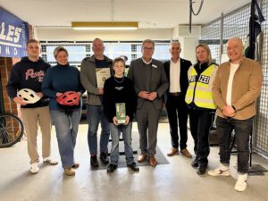 Die Geschwister-Scholl-Gesamtschule in Detmold hat die Auszeichnung Fahrradfreundliche Schule des Kreises Lippe in Gold erhalten. Landrat Meinolf Haase überreichte nun das Zertifikat bei einem persönlichen Austausch. Die Gesamtschule beschloss 2024 an dem Zertifizierungsprozess teilzunehmen und setzte mehrere Maßnahmen um. „Die Gesamtschule ist mittlerweile die fünfte Schule im Kreis, die wir auszeichnen. Dass wir heute zum ersten Mal den Gold-Status verleihen können, zeigt, dass sich das Bewusstsein für eine sichere Radinfrastruktur und die Bedeutung des schulischen Radverkehrs immer weiter verbreitet“, freut sich der Landrat. Schulleiter Christoph Trappe ergänzt: „Das Bewusstsein zeigt sich nicht nur bei Schülern, sondern auch beim Kollegium. Hier zieht die ganze Schule mit – sowohl bei einmaligen Projekten als auch im regulären Schulalltag.“