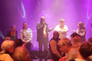 Ein Empfang mit Vertreterinnen und Vertretern der Stadt Lieusaint, des Kulturamtes sowie des Städtepartnerschaftskomitees und des Festkomitees bildete den Auftakt des Abschlussabends. Auch Blombergs Kulturbeauftragte Andrea Plat war für diesen Anlass nach Lieusaint gereist. Das Trio „Manos Arriba“ rundete den Abend mit einem mitreißenden Konzert ab, bei dem es Lieder aus Kuba bis Deutschland präsentierte.