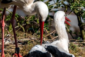 Eine besonders rührende Frühlingsgeschichte erzählen zwei Storchendamen. Eine der beiden verlor durch einen Unfall ein Auge, die andere erlitt einen Flügelbruch. Die Wildtier- und Artenschutzstation Sachsenhagen in der Nähe des Steinhuder Meeres nahm die flugunfähigen Vögel vorrübergehend auf. Bis sie jetzt Vogelpark Heiligenkirchen ein sicheres Für-immer-Zuhause fanden. „Sie sind gut angekommen und wirken glücklich: Schließlich haben beide in Heiligenkirchen eine neue Liebe gesucht und gefunden und bauen schon eifrig an ihren Nestern“, beschreibt Eckstein. Neben den Störchen kamen auch zwei Weißbüschelaffen nach illegaler Haltung zuerst nach Sachsenhagen und schließlich in den Vogelpark. Hier dürfen sie jetzt ihren Lebensabend genießen.