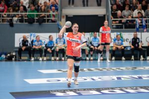 In dieser Phase entwickelte sich ein ausgeglichenes Spiel mit Chancen auf beiden Seiten. Nach rund zehn Minuten stand es weiterhin unentschieden: Sasaki traf vom Punkt, Mühlner antwortete postwendend mit dem 4:4. Nach einer Zeitstrafe gegen Magnúsdóttir kam Nicole Roth ins Tor und konnte sofort den dritten Siebenmeter der Gastgeberinnen parieren – ein wichtiger Moment, der der HSG neuen Schwung verlieh. In Unterzahl gelang Mühlner zunächst der Ausgleich zum 5:5, ehe sie wenig später per Gegenstoß sogar die erste Blomberger Führung erzielte. Anschließend erhöhte Kühne auf 7:5, worauf Göppingens Trainer Nico Kiener zur ersten Auszeit griff. Doch auch danach blieb die HSG konzentriert und spielfreudig. Göppingen gab sich allerdings nicht geschlagen und kämpfte sich über Sasaki und Schulze wieder heran, sodass die Partie erneut enger wurde.