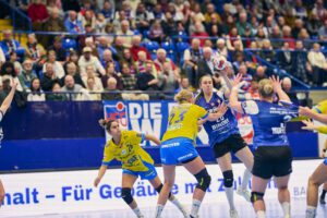 Die nächsten zwei Punkte in der Handball Bundesliga Frauen sammelten die Blombergerinnen am Mittwochabend in Neckarsulm. Trotz technischer Fehler und eines nicht durchgehend konsequenten Auftritts brachte die HSG die Partie weitgehend kontrolliert über die Bühne, befreite sich mehrfach aus Drucksituationen der Sport-Union und konnte sich insbesondere auf Nicole Roth zwischen den Pfosten verlassen. Die Torhüterin glänzte mit 17 Paraden und erreichte eine Quote von knapp 40 Prozent. Durch den Erfolg bauten die Blombergerinnen ihren Vorsprung auf Platz fünf weiter aus und festigten ihre Position in den Top Vier, um auch ab April weiterhin um die deutsche Meisterschaft mitspielen zu dürfen.