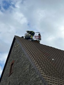 Am gestrigen Samstag wurde zunächst die Löschgruppe Herrentrup mit dem Einsatzstichwort Tier in Notlage alarmiert. In der Unteren Straße in Herrentrup saß eine entkräftete Katze bereits seit drei Tagen auf einem Scheunendach. Da mit der tragbaren Leiter nicht ran zukommen war, wurde die Drehleiter Blomberg nachalarmiert. Nach vorsichtigem annähern und locken mit Katzenfutter und guten Worten, konnte das junge Kätzchen in den Korb der Drehleiter geholt werden. Der Korb der Drehleiter befand sich noch nicht ganz am Boden da sprang das junge Tier bereits aus dem Korb und suchte das Weite.