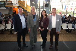 V. l.: Landrat Dr. Axel Lehmann, ADBG-Vorsitzende Stefanie Lehfeld, Karen Zereike, Leiterin des Eigenbetriebs Schulen des Kreises Lippe, und Dr. Jörg Weber, Leiter des Dietrich-Bonhoeffer-Berufskollegs des Kreises Lippe, eröffnen die ADBG-Jahrestagung in Detmold. FOTO: KREIS LIPPE