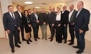 V. l.: Augustdorfs Bürgermeister Dr. Andreas J. Wulf, Lages Bürgermeister Matthias Kalkreuter, Detmolds Erste Beigeordnete und Kämmerin Dr. Miriam Mikus, Björn Metzner (Fachgebiet Finanzen Kreis Lippe), Lügdes Bürgermeister Torben Blome, Landrat Meinolf Haase, Dörentrups Bürgermeister Friso Veldink, Uwe Bartels (Leiter Fachgebiet Finanzen Kreis Lippe), Bad Salzuflens Erste Beigeordnete und Kämmerin Melanie Koring, Rainer Grabbe, Kämmerer Kreis Lippe und Allgemeiner Vertreter des Landrats, Lemgos Erster Beigeordneter und Kämmerer Frank Limpke sowie Blombergs Bürgermeister Christoph Dolle freuen sich über eine gelungene Sitzung des Arbeitskreises Kreisumlage. FOTO: KREIS LIPPE