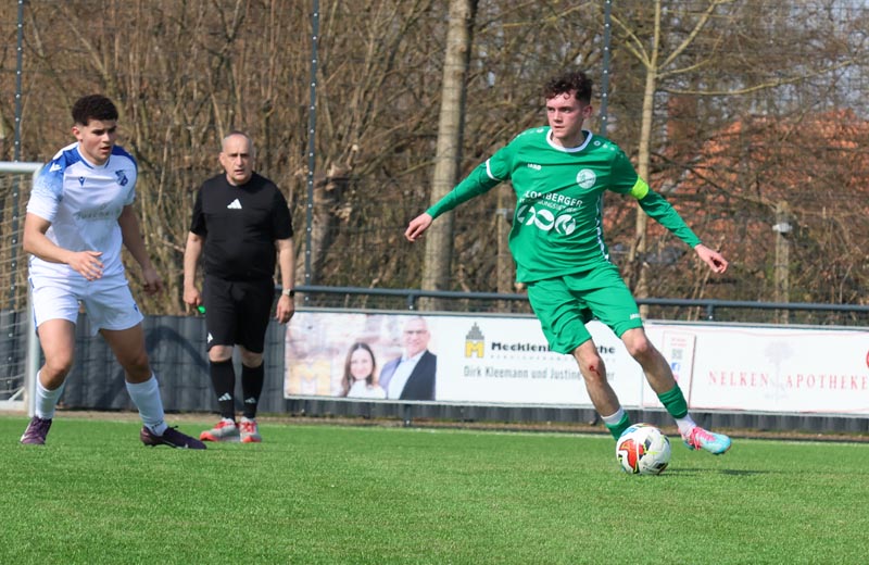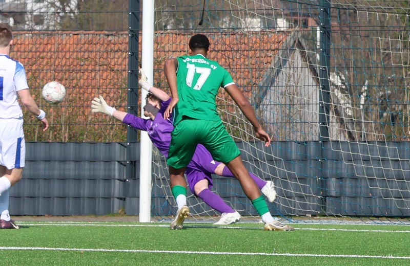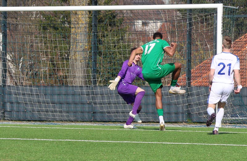Die Partie war damit früh entschieden, zumal der Torwart der Gastgeber unmittelbar nach dem dritten Treffer wegen Meckerns mit Gelb-Rot vom Platz gestellt wurde. In Überzahl ließen wir Ball und Gegner laufen und nutzten nahezu jede sich bietende Gelegenheit konsequent aus. Bas Veenstra erhöhte in der 24. Minute nach einem Alleingang über die rechte Seite auf 0:4, ehe Faniel Araya nur zwei Minuten später nach einem Steckpass frei vor dem Tor auftauchte und zum 0:5 vollendete. Nur eine Minute später setzte Bas Veenstra mit einem direkt verwandelten Freistoß aus rund 17 Metern das nächste Ausrufezeichen und stellte auf 0:6. Trotz der klaren Führung blieben wir konzentriert, ließen aber in der Folge etwas nach, sodass die Gastgeber in der 36. Minute zu ihrer einzigen nennenswerten Gelegenheit kamen. Nach einem Freistoß auf den zweiten Pfosten kam Martin Albrecht per Kopf zum Abschluss, doch unser Torwart Simon Kühne reagierte stark und parierte sehenswert.