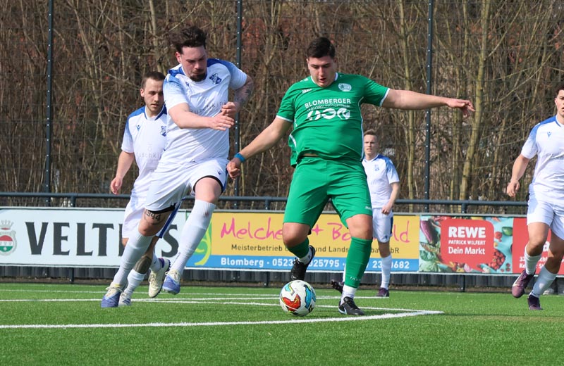 Auch die Blomberger Reserve war erfolgreich, der BSV schreibt dazu: „Wir sind als Tabellenzweiter mit viel Selbstvertrauen zum Auswärtsspiel bei der SG Klüt-Wahmbeck angereist und wollten direkt an den deutlichen Auftaktsieg anknüpfen. Von Beginn an haben wir keinen Zweifel daran gelassen, wer dieses Spiel bestimmen würde, und sind bereits in der 2. Minute in Führung gegangen. Hamidreza Azimi zog von der Seite in die Mitte und legte im richtigen Moment auf Bas Veenstra ab, der frei vor dem Tor die Übersicht behielt und zum 0:1 einschob. Wir blieben direkt am Drücker und zwangen den Gegner früh zu Fehlern. Nach einem Foulspiel des Torwarts an Elias Ginter zeigte der Schiedsrichter in der 13. Minute folgerichtig auf den Punkt. Elias Ginter übernahm selbst die Verantwortung und verwandelte den Strafstoß sicher zum 0:2. Nur wenige Minuten später spielten wir erneut zielstrebig in die Tiefe, Can Cakir wurde geschickt auf die Reise geschickt, der gegnerische Torwart verschätzte sich komplett und Can Cakir nutzte die Situation eiskalt zum 0:3 in der 17. Minute.