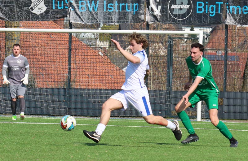 Mit zunehmender Spielzeit gelang es uns nicht, unsere spielerischen Vorteile konsequent in klare Torchancen umzusetzen. Istrup verteidigte kompakt und nutzte schließlich eine Unachtsamkeit eiskalt aus: Nach einem langen Ball landete die Kugel genau vor den Füßen von Fabio Cucchiara, der aus 13 Metern zur 0:1-Führung traf. Bis zur Halbzeit gelang es uns trotz Bemühungen nicht mehr, den Ausgleich zu erzielen. Auch nach dem Seitenwechsel übernahmen wir zunächst die Kontrolle, ohne jedoch die nötige Durchschlagskraft im letzten Drittel zu entwickeln. Ein Kopfball von Chako Fahro nach einer Ecke verfehlte das Tor ebenso wie weitere Versuche.