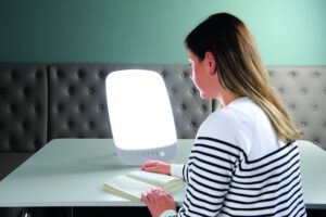 Die gute Nachricht: Auch schwächere Lampen können helfen, wenn man länger davor sitzt. Statt 30 Minuten bei 10.000 Lux reichen auch 75 Minuten bei 4.000 Lux. Wichtig ist, dass die Augen offen sind und man gelegentlich direkt in die Lampe blickt – nebenbei lesen oder Kaffee trinken ist erlaubt. Optimal ist kaltweißes Licht mit hohem Blauanteil – das ähnelt dem natürlichen Tageslicht am meisten. Farbige Leuchtmodi oder Dimmfunktionen mögen hübsch aussehen, haben aber keinen therapeutischen Nutzen.
