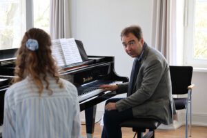Nach der Mittagspause laden Lehrkräfte in Workshops zum Mitmachen ein. Diese finden an verschiedenen Orten auf dem Campusgelände statt. Ob Chorleitung, Improvisation von Pop bis Jazz, Ensembleleitung oder Einblicke in Audio- und Videoschnitt am Tonmeisterinstitut – die Teilnehmenden erleben die Vielfalt eines Musikstudiums und können die Angebote direkt vor Ort ausprobieren.
