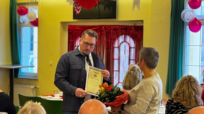 Mit Vorfreude gab er einen Ausblick auf das kommende Jahr, in dem nicht nur das 450-jährige Jubiläum des Alten Blomberger Schützenbataillons gefeiert wird, sondern auch die Westfälischen Schützentage, für die das Alte Blomberger Schützenfest in diesem Jahr Gastgeber sein wird – zwei absolute Höhepunkte für alle Schützenfreunde. Besondere Worte des Dankes richtete der Rottführer an die langjährige Wirtin des Rottlokals „Bei Heini“, Barbara Henning. Für ihre treue Unterstützung über viele Jahre hinweg überreichte der Rottmeister Dennis Kernchen-Page ihr einen Blumenstrauß und eine Ehrenurkunde. Ebenso bedankte sich der Rottführer von Herzen bei seiner Frau Natascha, die ihm seit Jahren den Rücken frei hält und das Rott mit großem Engagement unterstützt – eine starke Frau an seiner Seite.