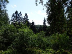 „Der Bärenstein nahe der Externsteine ist eine der wenigen, erhaltenen Bergheiden, die noch viele Wacholder beherbergt“, sagt Luisa Glocker von der Biologischen Station Lippe. Wacholder sind typische Weidezeiger und deuten somit auf die historische Nutzung des Waldes hin. „Als Weidezeiger werden die Arten bezeichnet, die vom Vieh verschmäht werden, z. B. weil die Pflanzen giftig sind oder Stacheln haben“, erläutert Glocker. Wacholder und andere typische Heidesträucher wie z. B. die Besenheide oder die Blaubeere benötigen wenig Nährstoffe, saure Bodenbedingungen, Licht und kommen auch mit wenig Niederschlag bzw. verfügbarem Wasser zurecht. Das macht sie und ihren Lebensraum Bergheide so wertvoll.