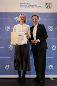 Die Verleihung des Landeslehrpreises fand am 11. Dezember im Deutschen Bergbau-Museum Bochum statt. Wissenschaftsministerin Ina Brandes ehrte dort fünf Preisträgerinnen und Preisträger verschiedener Hochschulkategorien – darunter auch die Kategorie Kunst- und Musikhochschulen. „Die Hochschullandschaft in Nordrhein-Westfalen gehört zur internationalen Spitze. Das verdanken wir in besonderem Maße den Hochschullehrerinnen und Hochschullehrern, die ihren Beruf als Berufung leben.