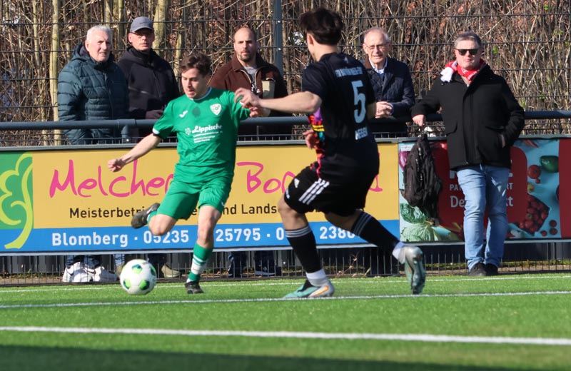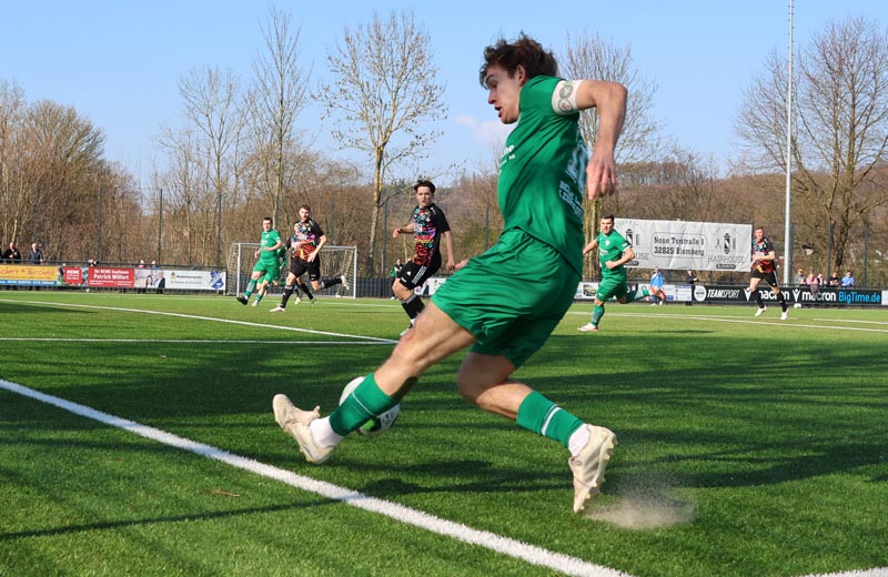 Die SG blieb auch im zweiten Durchgang am Ball. Louis Hilker traf in der 48. per Strafstoß und Finn Niederkrome erhöhte auf 4:1 nur eine Minute später. Die Partie war entschieden? Keinesfalls. FSV Bad Wünnenberg/Leiberg steckte nicht auf und erneut Schulz traf zum 4:2. Die SG war in dieser Phase nicht wach und wurde, nur eine Minute später, erneut bestraft als Sven Statis auf 4:3 verkürzte. Aus Sicht der Blomberger blieb es glücklicherweise bei diesem Spielstand als Alexander Asabin nach 95 Minuten abpfiff. In der Tabelle schiebt sich die SG Belle-Cappel-Leopoldstal wieder nach vorne und steht nach dem 21. Spieltag mit 43 Punkten nur einen Punkt hinter Tabellenprimus SV Dringenberg, die allerdings zwei Spiele weniger absolviert haben.