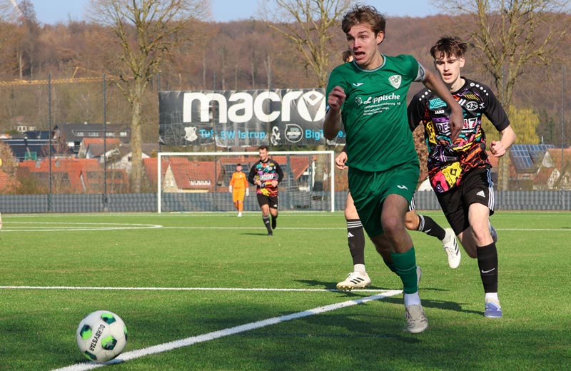 Ersatzgeschwächt bestritt die SG Belle-Cappel-Leopoldstal am gestrigen Sonntag ihr Heimspiel gegen FSV Bad Wünnenberg/Leiberg auf dem Kunstrasenplatz Istrup. Schon im Hinspiel hatten die Gäste es der SG BCL schwer gemacht und es blieb bis zum Ende hin spannend. Schon in der 7. Minute gab es den ersten Wechsel, Felix Spilker kam für den angeschlagenen Luka Klützing. In der 16. Minute setzte sich Spielertrainer Vadim Thomas mit einer tollen Einzelleistung gegen die Defensive der Gäste durch und traf zum 1:0. Drei Minuten später dann noch ein ungeplanter Wechsel – auch Marvin Schmidt musste vorsorglich den Platz verlassen, er wurde ersetzt durch Marvin Wittelmeyer. In der 25. Spielminute konnten die Gäste durch Meik Schulz ausgleichen, der nur fünf Minuten später per Eigentor die Partie wieder zugunsten der SG BCL verlaufen ließ und damit auch zeitgleich den Halbzeitstand markierte.