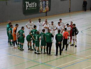 Im ersten Spiel gegen die SF Oesterholz-Kohlstädt gerieten wir zunächst in Rückstand, als Bruns nach 6:05 Minuten das 0:1 aus unserer Sicht erzielte. Wir hatten deutlich mehr Torchancen, agierten aber noch zu passiv und waren eher darauf bedacht, Gegentore zu vermeiden. Rautenberg brachte uns mit dem 1:1 zurück ins Spiel, doch Oesterholz zeigte sich äußerst effektiv und ging durch Bellouajr erneut in Führung. Wir erhöhten daraufhin den Druck, kamen durch Motzkun zum verdienten 2:2-Ausgleich und warfen in der Schlussphase alles nach vorne. Dieser Mut wurde belohnt, als Bültmann in der 11:46 Minute den entscheidenden Treffer zum 3:2-Endstand erzielte.