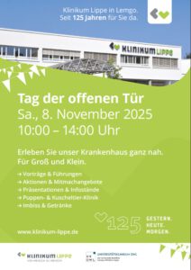 Am Samstag, 8. November 2025, öffnet das Klinikum Lippe in Lemgo von 10:00 bis 14:00 Uhr seine Türen für alle interessierten Besucherinnen und Besucher. Unter dem Motto „Gestern. Heute. Morgen.“ lädt das Klinikum Lippe herzlich dazu ein, das traditionsreiche Krankenhaus einmal ganz aus der Nähe kennenzulernen.