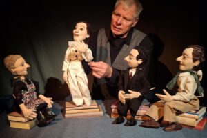 Schauspieler Ralf Kiekhöfer (Töfte-Theater) mit den Protagonisten. Foto: Theater Töfte