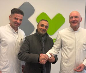 Patient Serdal Cingöz (Mitte) ist Oberarzt Dr. Fabian Nimczewski (links) und Klinikdirektor Univ.-Prof. Dr. Jens Höppner (rechts) dankbar für die fachliche Expertise und menschliche Begleitung. (Foto: Klinikum Lippe / Christian Ritterbach)