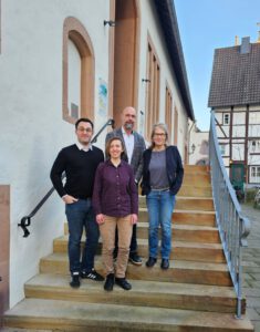 V. l.: Wirtschaftsförderer Tobias Vietz, Klimaschutzbeauftragte Ronja Post, 1. Beigeordneter und Kämmerer Frank Limpke und LEADER-Regionalmanagerin Susanne Weishaupt freuen sich auf das neue Projekt. (Foto: Alte Hansestadt Lemgo)